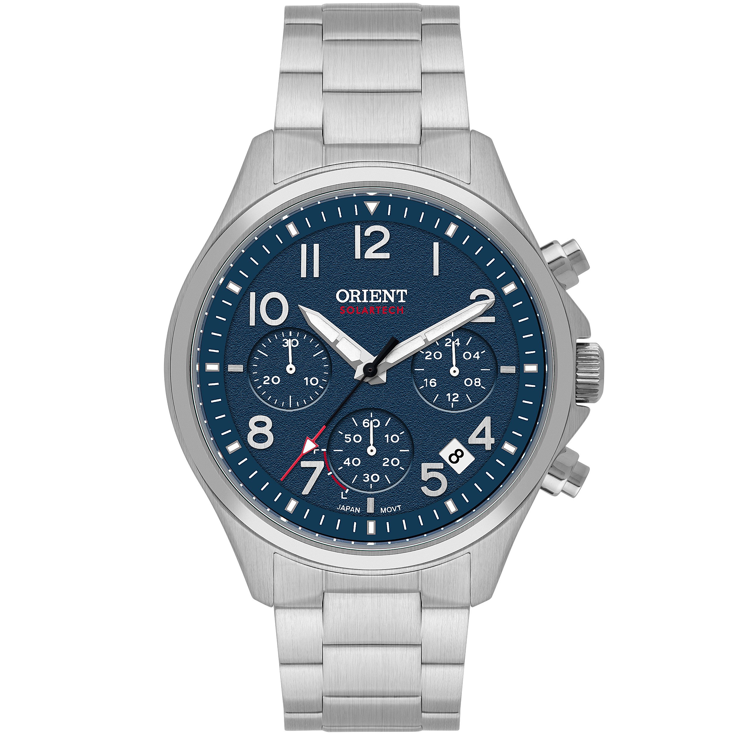 Funções: Cronógrafo, Calendário simples e Indicador de reserva de energia