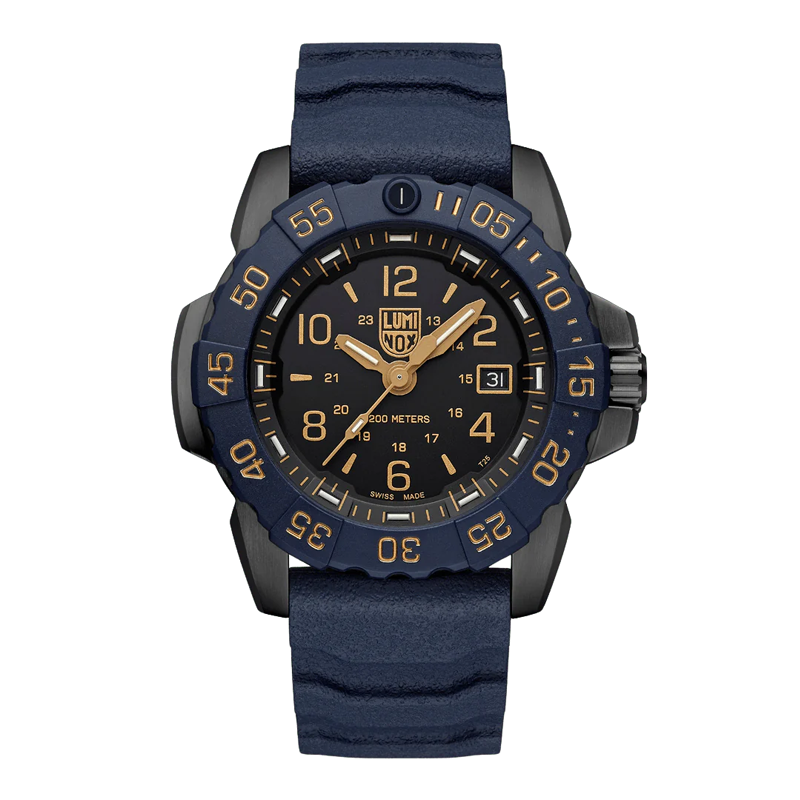 Outros: Coroa Rosqueado, Fundo personalizado com o símbolo dos Navy Seals, Fundo rosqueado, Proteção de coroa, Revestimento anti-reflexo, Auto-iluminação LLT (Luminox Light Technology, até 25 anos de luminosidade) e revestimento IP Black na caixa